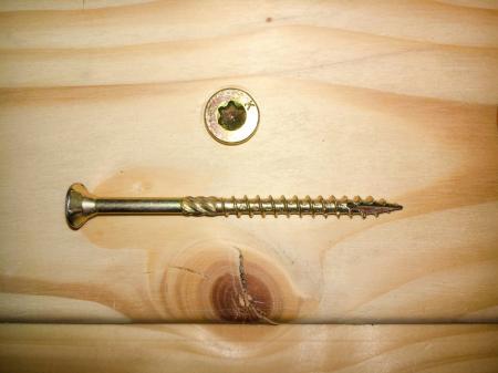 Такой шуруп имеет специальную структуру резьбы, поэтому он легко и без предварительного сверления закручивается в древесину образуя трещин и сколов.